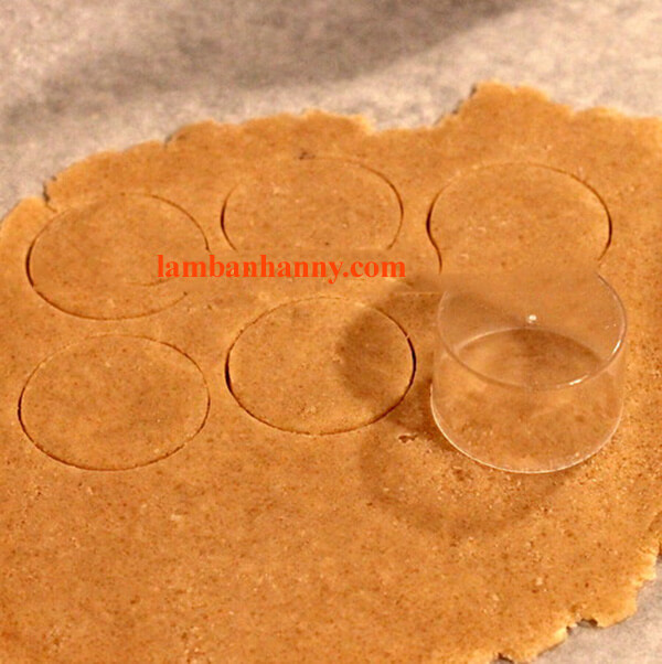 – Bước 7: Khi bột đã lạnh và tương đối cứng, có thể cắt dễ dàng thì dùng khuôn cắt bột thành các miếng tròn nhỏ. Các phần bột thừ bạn nhào lại và cán cắt tiếp.