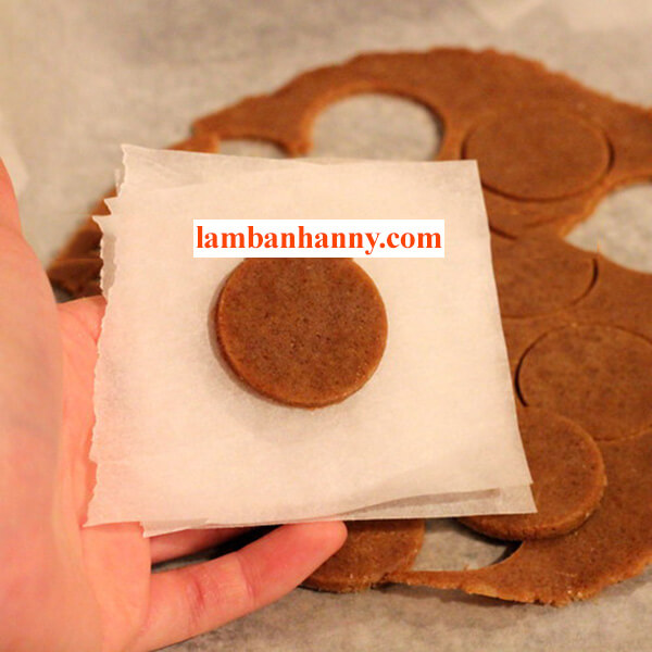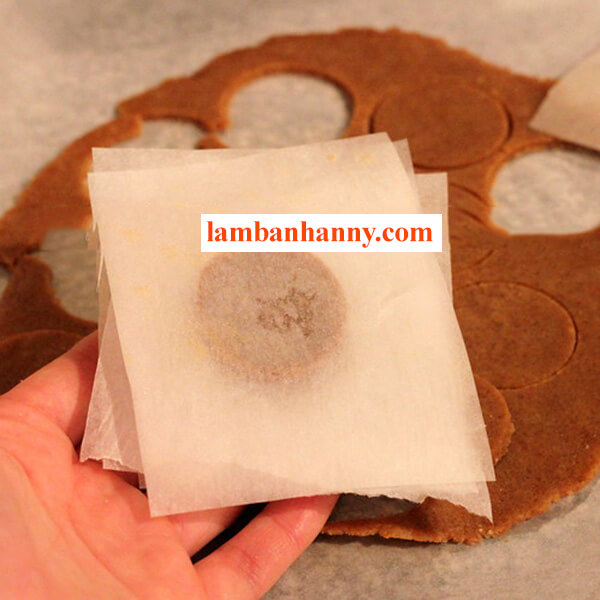 – Bước 8: Khi đã cắt xong hết bột. Bạn chuẩn bị một miếng giấy nến nhỏ. Đặt bột lên miếng giấy nến rồi đặt một miếng giấy khác lên trên bột.