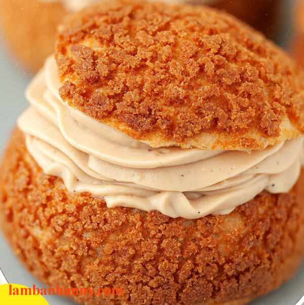 – Bước 5: Tiếp theo, đặt phần bột vỏ giòn (đã đông cứng, chuẩn bị ở phần 1) lên bột bánh su kem. Và đem nướng bánh ở 200 – 210 độ C trong 12 – 15 phút, khi mặt bánh bắt đầu vàng thì hạ xuống 180 – 190 độ và nướng thêm 15 – 17 phút đến khi mặt bánh khô ráo hoàn toàn.