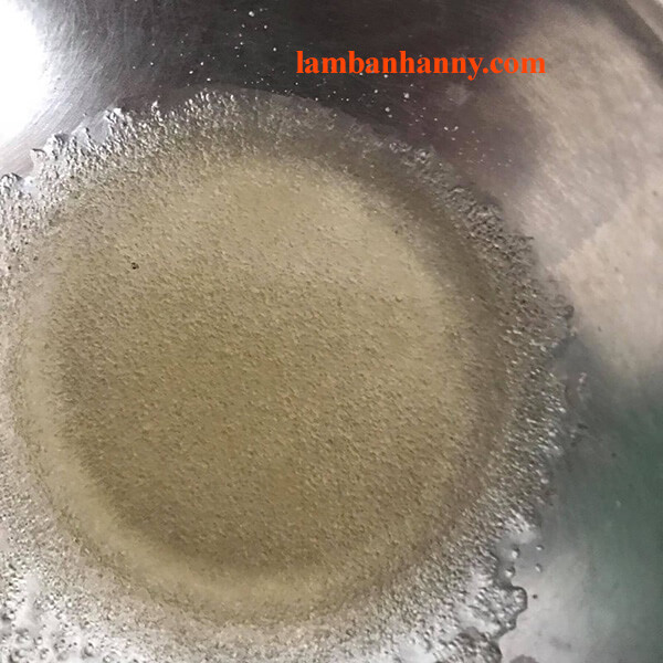 – Bước 3: Cho 3gr bột gelatin vào chén nhỏ rồi thêm 2 muỗng cà phê nước lọc vào, ngâm khoảng 15 phút cho bột nở.