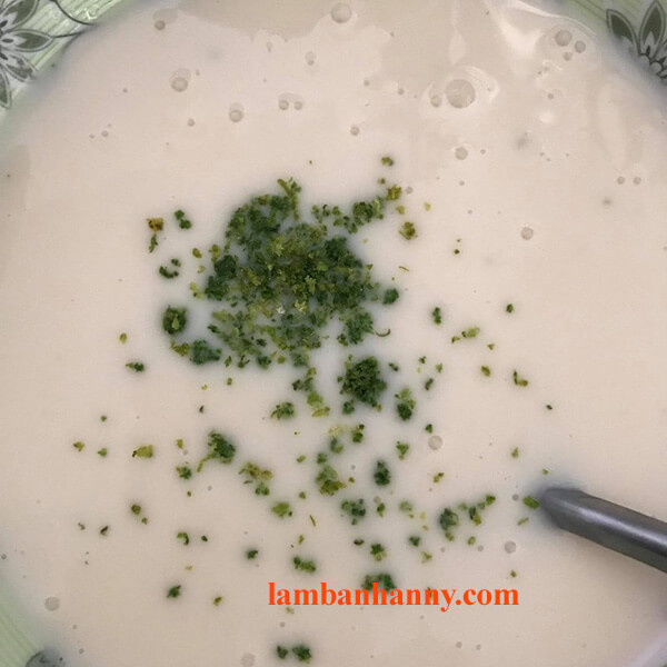 – Bước 4: Cho bột gelatin đã ngâm nở vào 25ml nước cốt chanh rồi đem hấp cách thuỷ hỗn hợp khoảng 3 phút để gelatin tan ra. Sau đó, cho 100gr sữa đặc và phần vỏ chanh đã bào vào hỗn hợp rồi khuấy đều.