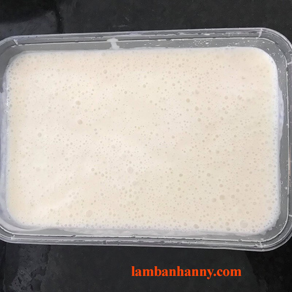 – Bước 7: Cho hỗn hợp kem ra hộp hoặc khuôn tuỳ thích rồi đem để trong ngăn đông tủ lạnh khoảng 3 – 4 tiếng, đến khi hỗn hợp kem đông cứng lại là bạn có thể mang ra thưởng thức được rồi đấy!